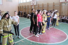 Сегодня в нашей гимназии состоялась спортивно-военизированная эстафета, организованная по инициативе ВДПО г. Зеленодольска. Спортивные состязания, в которых приняли участие учащиеся 6-х классов нашей гимназии, были посвящены предстоящему Дню защитника Отечества, а также 60-летию создания службы. Участникам состязаний предстояло пройти немало испытаний - преодолеть "задымленный" участок здания в противогазе, организовать переноску раненого, самостоятельно вызвать пожарную охрану, принять участие в "тушении пожара". А капитаны команд примерили на себя настоящий костюм огнеборца! Преодолев все испытания, ребята поняли, насколько ответственна, сложна и очень важна работа спасателей-пожарных!
