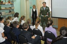 19 декабря в гимназии состоялась встреча отряда юнармейцев 6 В класса нашей гимназии с начальником городского штаба юнармии Братухиным В.В. Владимир Валерьевич рассказал ребятам о целях и задачах нового детского движения, которое начинает работать во всех муниципальных районах нашей республики. Это движение, которым охвачены все образовательные организации, имеет патриотическое направление. По окончании встречи Владимир Валерьевич ответил на многочисленные вопросы ребят.