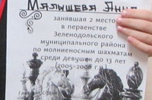 МАЛЫШЕВУ АННУ, ученицу 3Б класса, занявшую 2 место в первенстве Зеленодольского муниципального района по молниеносным шахматам! МОЛОДЕЦ! ТАК ДЕРЖАТЬ!