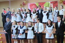 Ученики 9, 11 классов исполняли песни, выражали слова благодарности учителям, дарили им цветы. Торжественная линейка закончилась исполнением вальса с учителями