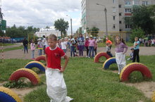 11 июня был организован детский Сабантуй. Жители «Радужной страны» с удовольствием и с большим энтузиазмом принимали участие в веселых эстафетах. Вожатые не скупились на призы, ребята прыгали, бегали, соревновались, особо заинтересовал присутствующих новый аттракцион – битва мешками. Непросто было удержать равновесие на бревне, но среди всех оказались лучшими Комиссаров Данил, Еремин Алексей. После проведенного праздника ребята провели акцию «Чистая школа».