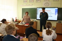 В рамках месячника безопасности в гимназии состоялись уроки по безопасному поведению в чрезвычайных ситуациях. Эти уроки провел начальник караула пожарной части №8 Ермолаев А.И. Он напомнил детям о правилах поведения при пожаре.