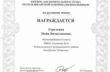Рус теле буенча республика олимпиадасы призеры 6 нчы сыйныф укучысы Горелкин М. һәм рус теле, әдәбияты укытучысы Акимова С. Ю. ны котлыйбыз ! Без сезнең белән горурланабыз!