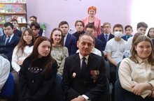 В рамках месячника военно-патриотического воспитания состоялась встреча учащихся 9 А класса с участником боевых действий в Чечне Жигитовым В.А., которая прошла в филиале библиотеки №3.