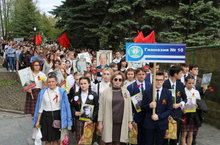 9 мая, в великий день Победы учащиеся и педагоги гимназии приняли участие в торжественном шествии к Вечному огню. В одной колонне прошел и «Бессмертный полк», тех, кто сражался на фронтах Великой Отечественной войны, а также ковал победу в тылу.