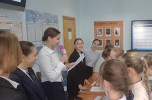 Директор Центра творчества, депутат городского Совета Ирина Фесенко и руководитель Музея участников боевых действий Руслан Хасанов провели Парламентский урок в 8 классе гимназии №3 14.03.2025