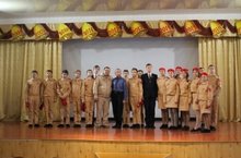 В гимназии №3 состоялось торжественное вручение удостоверений и шевронов ВВПОД "ЮНАРМИЯ" начальником Зеленодольского штаба Братухиным В.В. 09.01.2019