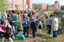 Сегодня ученики 1 классов вместе с родителями и учителями посадили яблони 07.09.2018