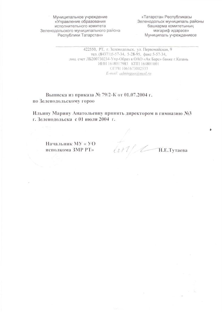 | Короткое название: | МБОУ «Гимназия №3 ЗМР РТ» |