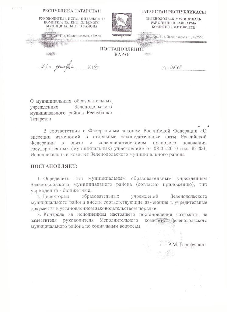 Учредителем муниципального бюджетного общеобразовательного учреждения "Гимназия №3 Зеленодольского муниципального района Республики Татарстан" является Муниципальное образование "Зеленодольский муниципальный район". Полномочия Учредителя осуществляет Исполнительный комитет Зеленодольского муниципального района. Юридический адрес "Управление образования ИК ЗМР РТ": 422540, Республика Татарстан, г.Зеленодольск, ул.Ленина, д.38 https://edu.tatar.ru/z_dol/zelenodol