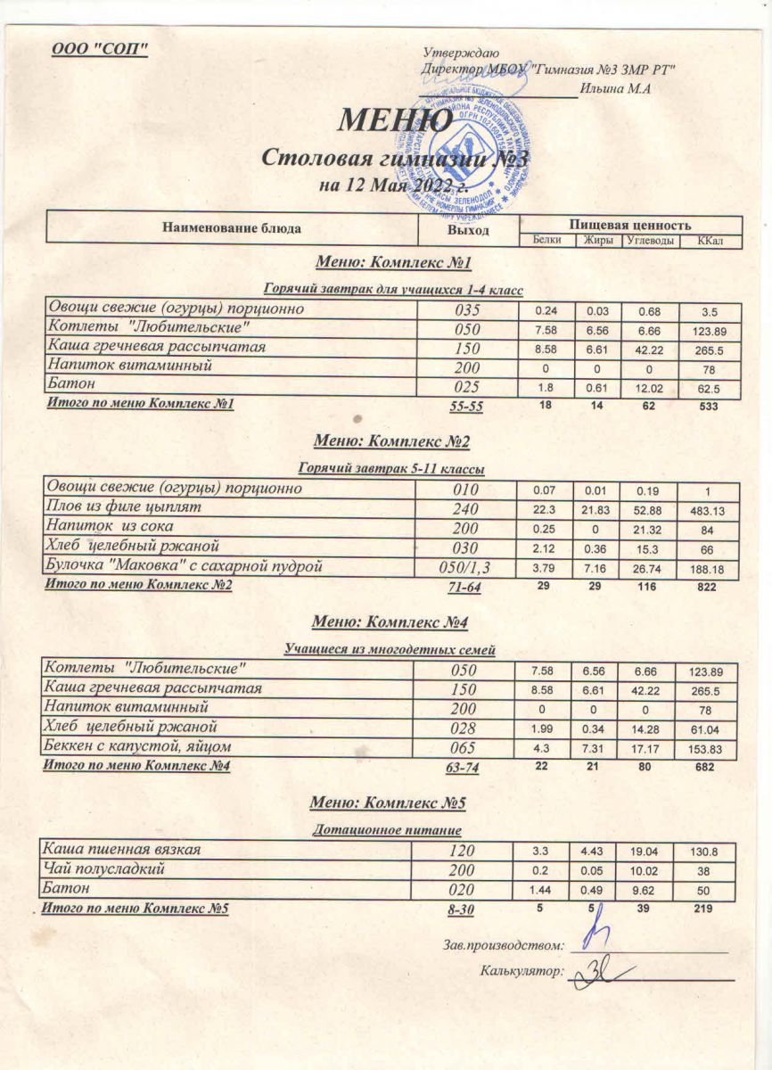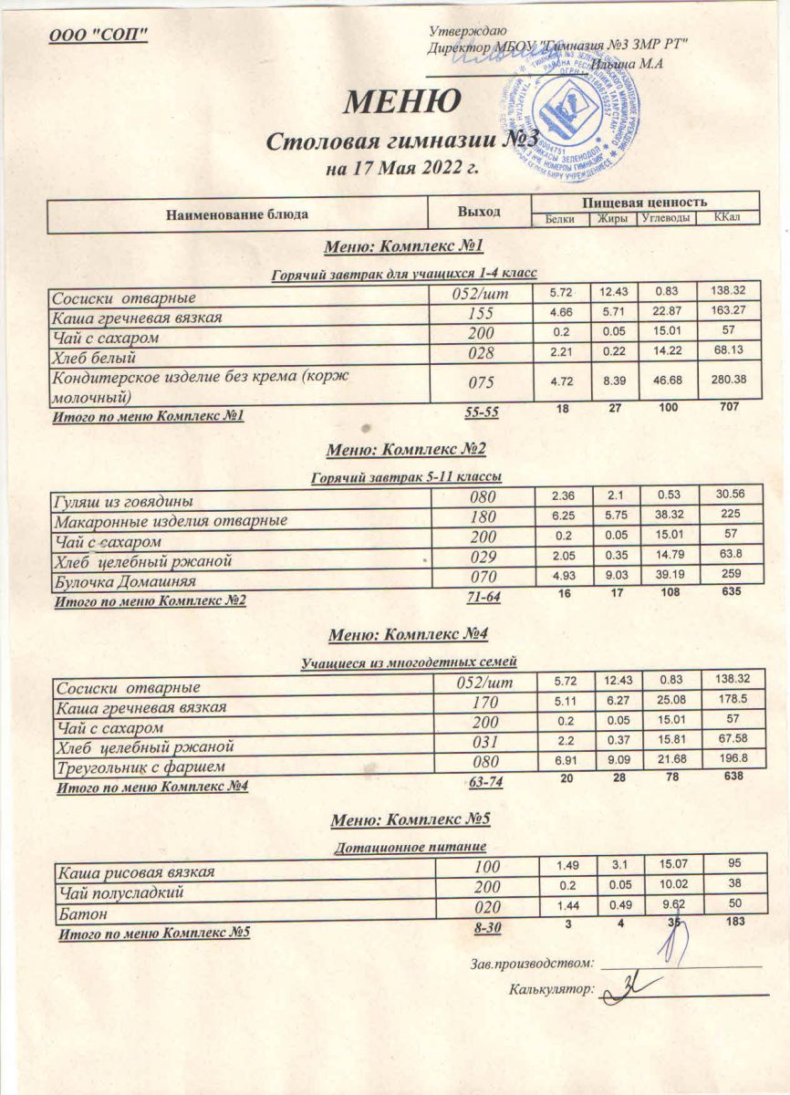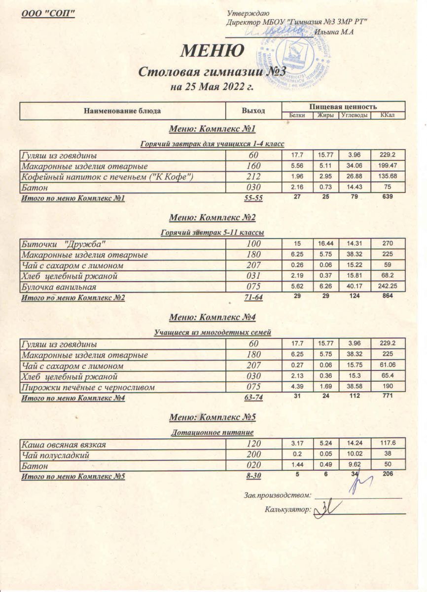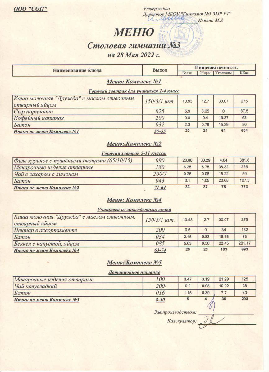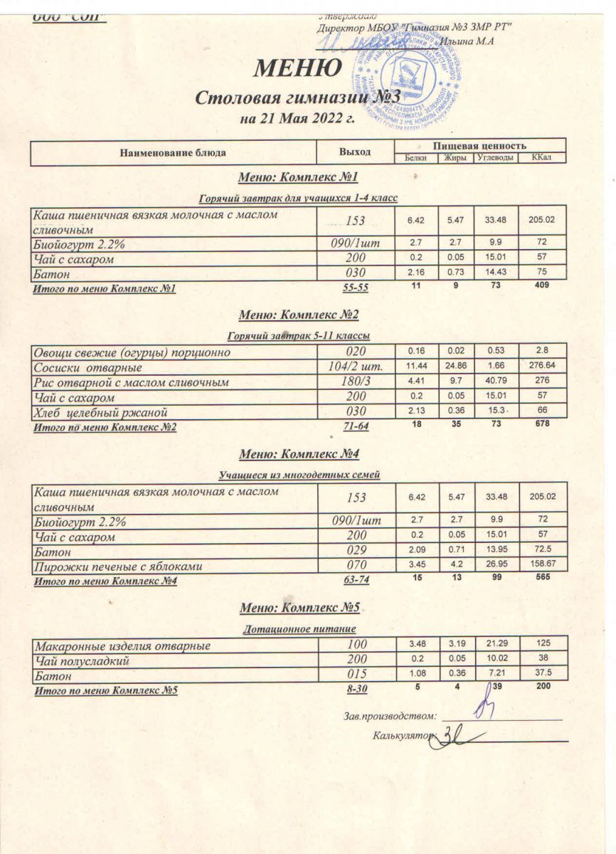 Меню (май)