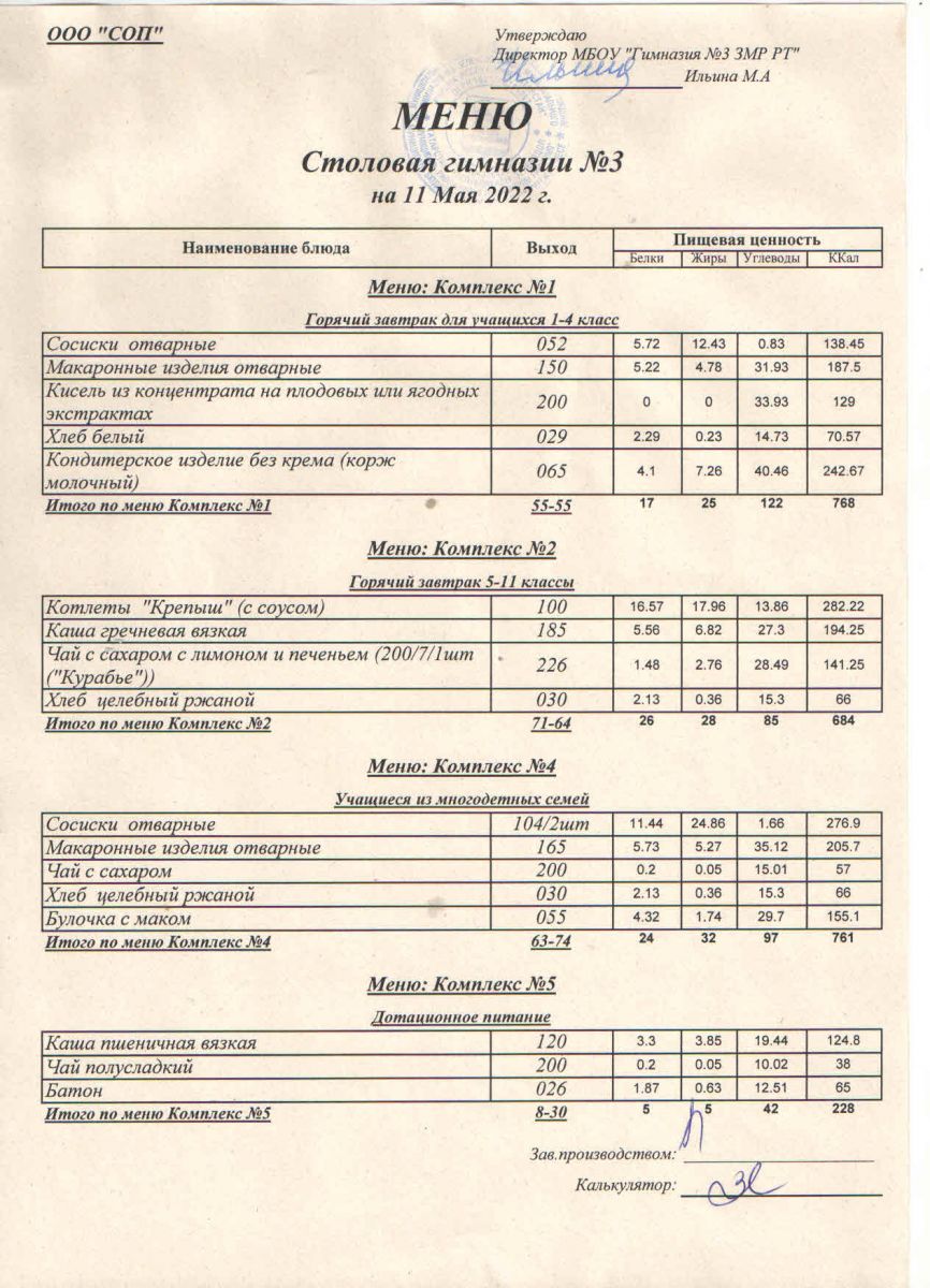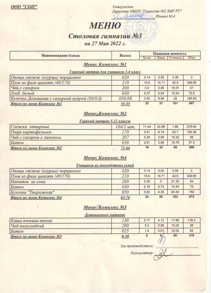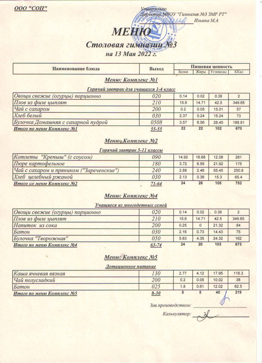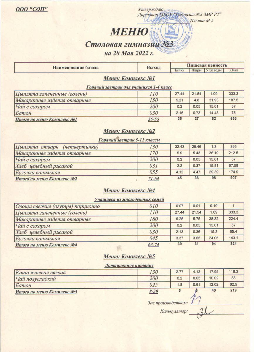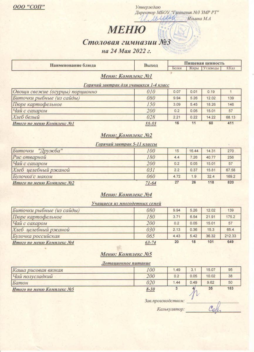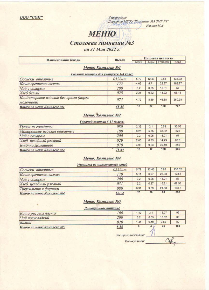 Меню (май)