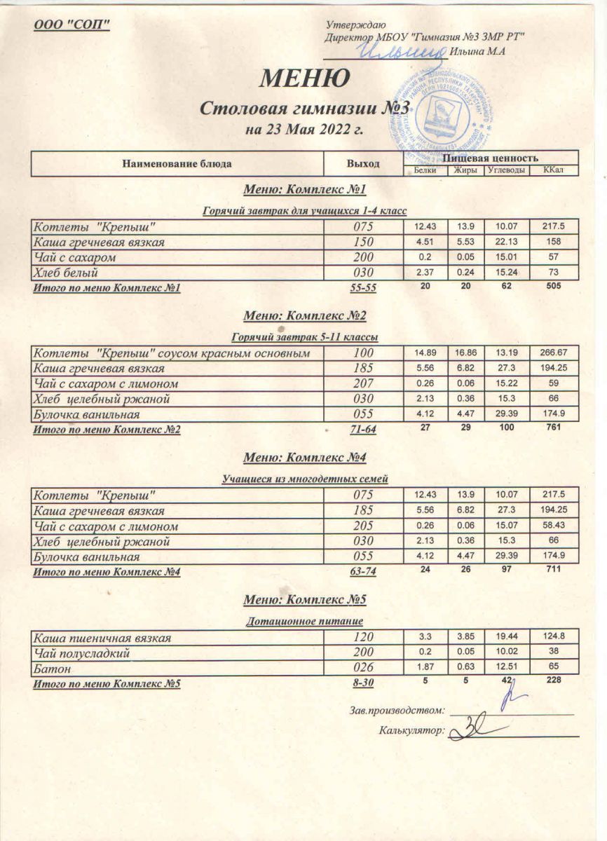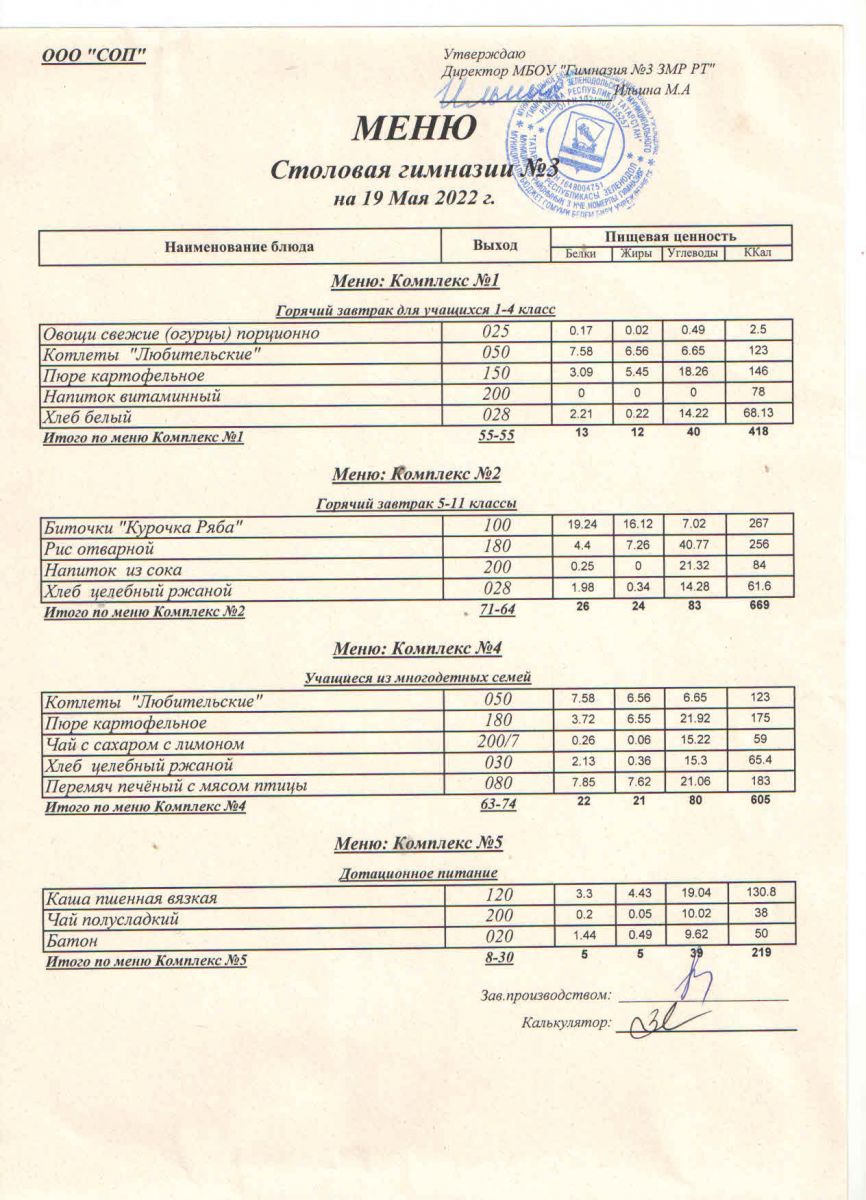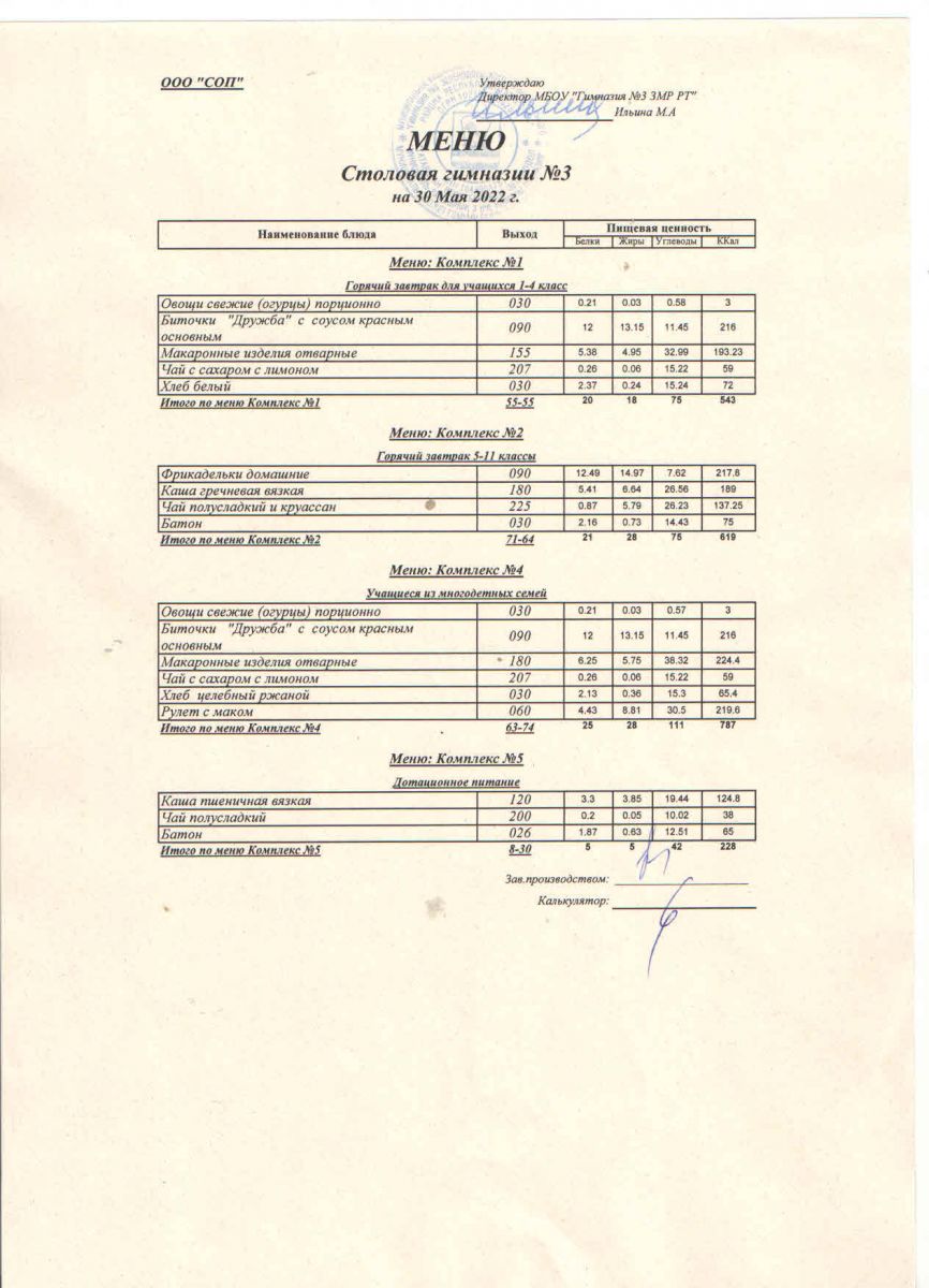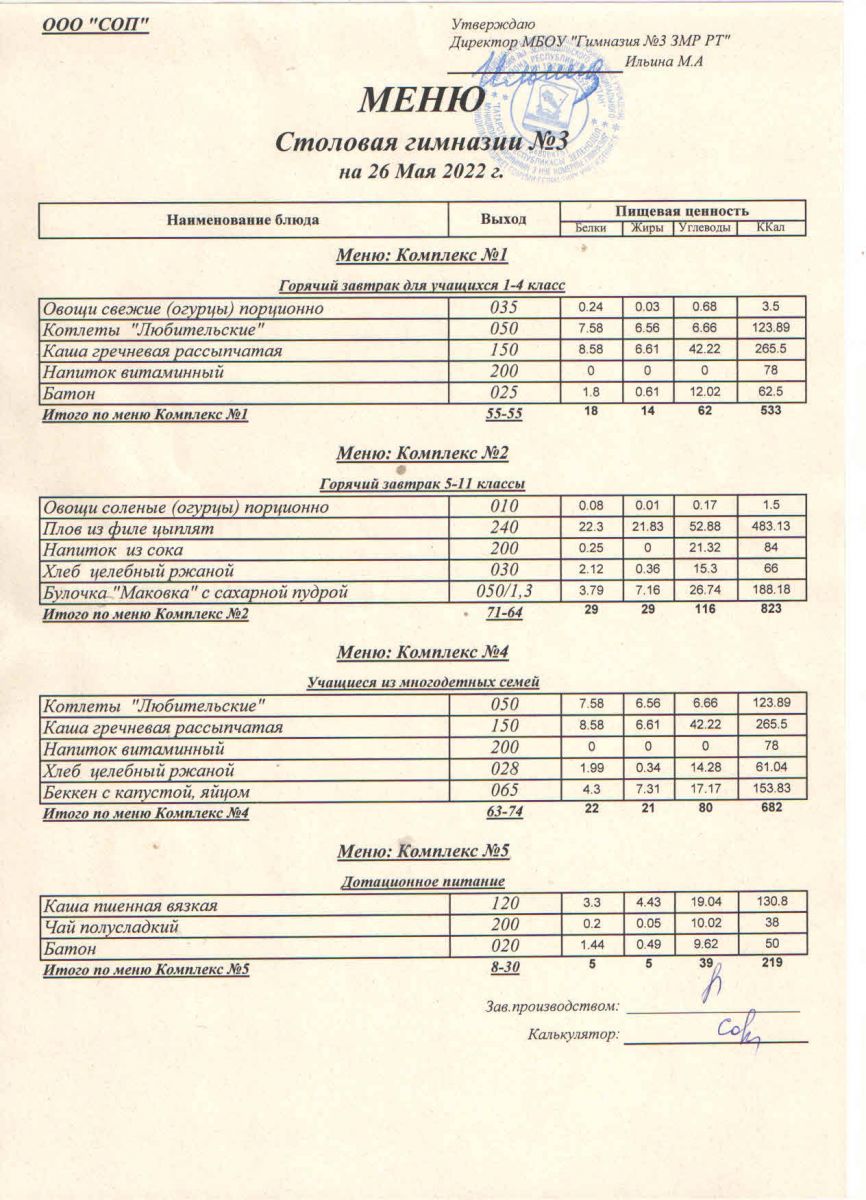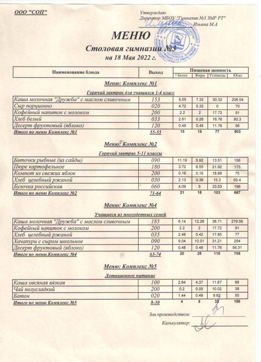 Меню (май)