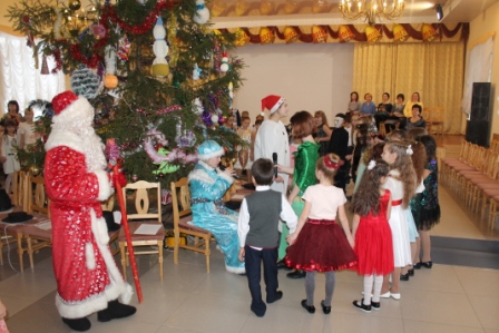 В гимназии №3 были проведены праздничные мероприятия для учеников начальных классов: дети вместе с Дедом Морозом, Снегурочкой и другими сказочными персонажами водили хороводы вокруг елки, танцевали, пели и участвовали в веселых конкурсах.