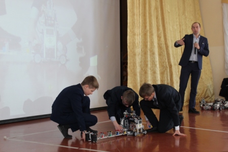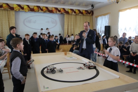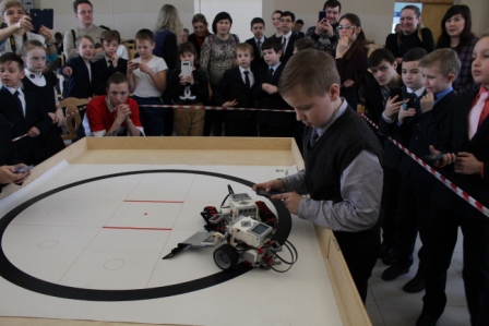 Со своими роботами учащиеся 3-4 классов приняли участие в соревнованиях «Сумо» и командных соревнованиях «Робобои».