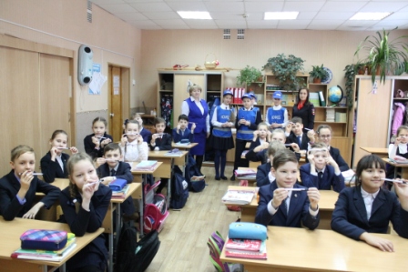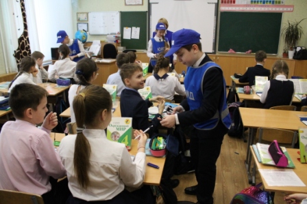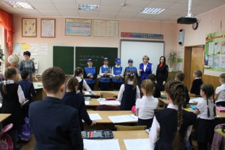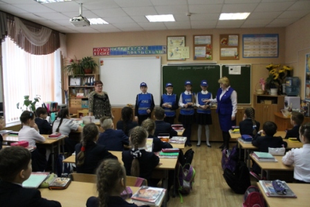 Сегодня для учащихся начальной школы Урок безопасности дорожного движения провели представители отряда ЮИД и ГИБДД