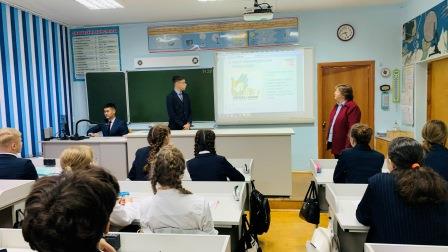 Утро в гимназии началось с поднятия флагов Российской федерации и Республики Татарстан и "Разговоров о важном", Сегодня школьники говорили об уважении к людям старшего поколения.