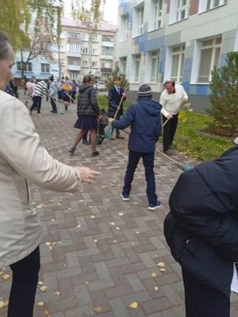 В гимназии проходят экологические акции по очистке территории гимназии от опавшей листвы. Сегодня на уборку выходили пятые и десятые классы.