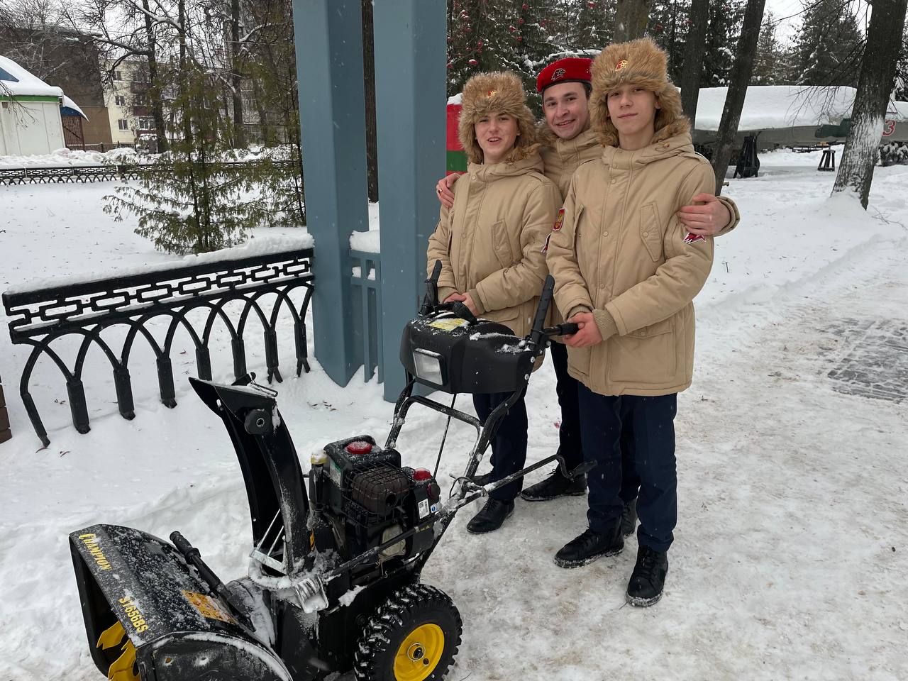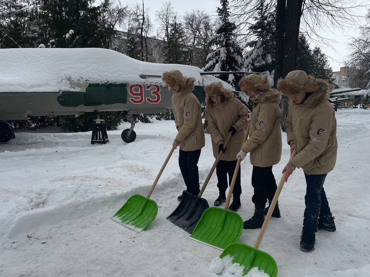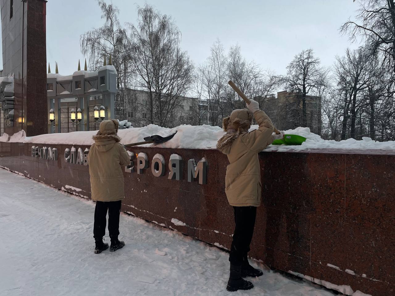 В минувшие дни активисты отряда занялись уборкой снега на территории одной из главных достопримечательностей города - Парка Победы.