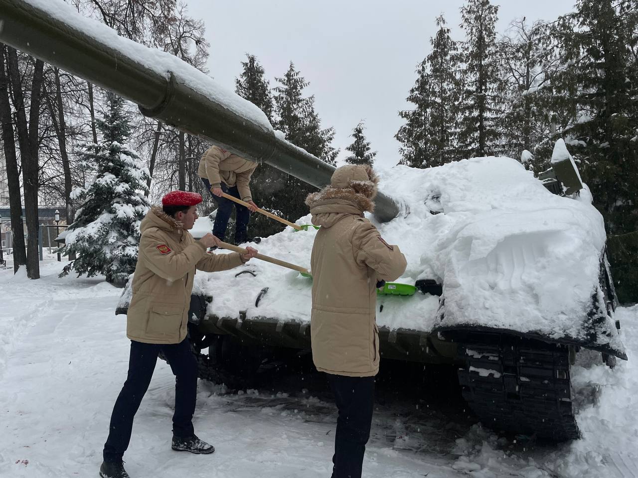 Ежегодная традиция уборки снега в Парке Победы города Зеленодольска прочно вошла в календарь юнармейских дел отряда "Патриот" им. А.В.Суворова МБОУ "Гимназия №3 ЗМР РТ".