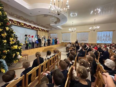 Ученики 3 класса подготовили и показали представление "Новогодние приключения" ребятам начальной школы