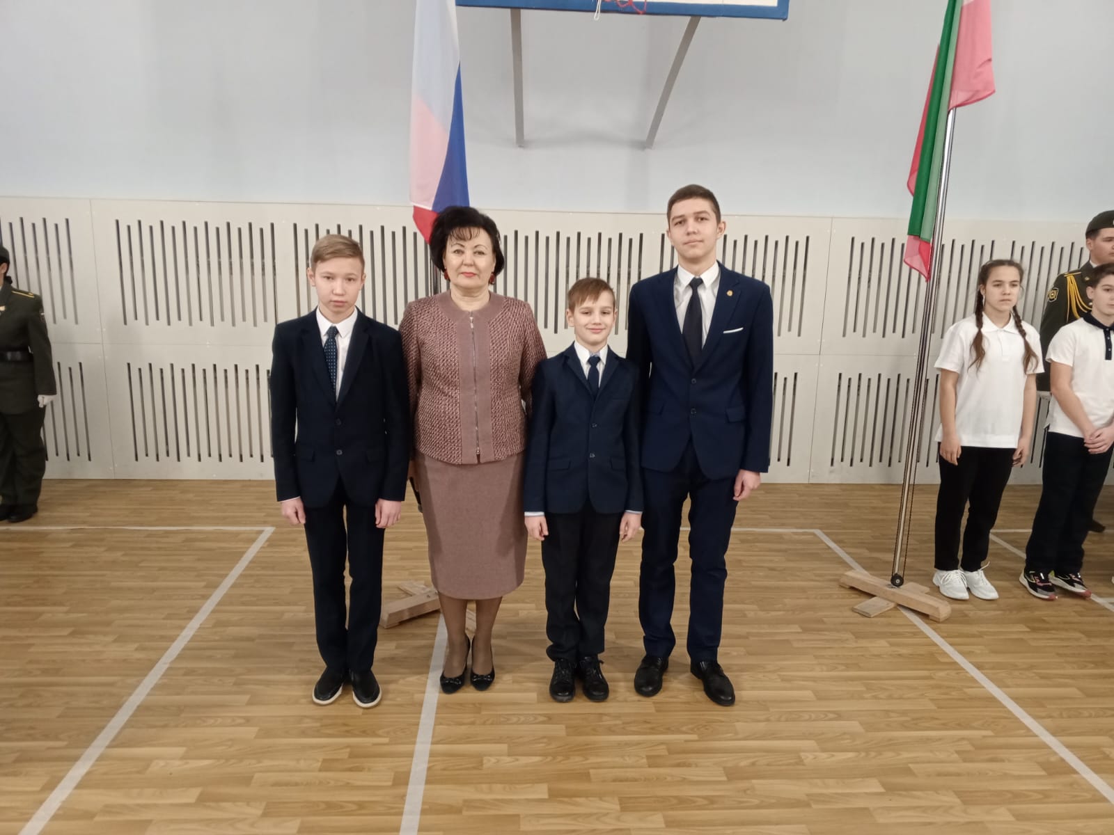 Опубликовано: 27.01.2025На церемонии поднятия флагов прошло награждение победителей в рамках фестиваля Всероссийского физкультурно-спортвного комплекса "Готов к труду и обороне": Тагирова А., ученика 8 класса, Зарипова Т., ученика 7 класса, Коновалова И., ученика 4 класса. Также на церемонии поздравили победителей соревнований по школьному гольфу среди обучающихся Зеленодольского муниципального района РТ: Биккузину Э. , ученицу 6 класса, Моисеева Л., ученика 6 класса, , Осокина И., ученика 6 класса. Поздравялем ребят и их руководителей - Зиганова А.А. и Михайлова С.А.