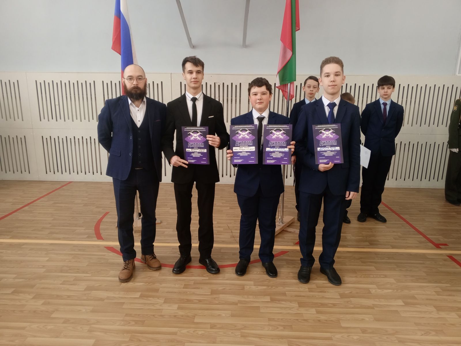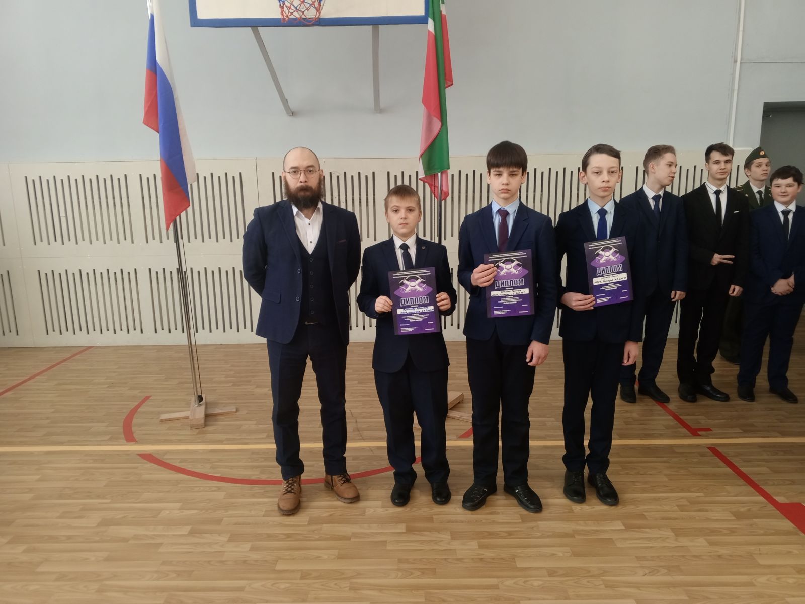 Опубликовано: 02.03.2026На церемонии поднятия флагов традиционно были награждены победители и призеры конкурсов и олимпиад: Максимова А., ученица 11 класса, победитель заключительного этапа республиканской олимпиады школьников по английскому языку "Путь к Олимпу", Гафиатуллин Олег, ученик, 10 класс, призёр заключительного этапа республиканской олимпиады школьников по физике "Путь к Олимпу". Также чествовали победителей и призёров соревнований "Кубок вызова" по беспилотным летательным аппаратам среди общеобразовательных организаций Зеленодольского муниципального района Республики Татарстан: Крапивина Д., Кротова Я., Шалина Г., учеников 6 класса, Ахметшина А., Мышева А., учеников 9 класса, Магницкого Д., ученика 10 класса. Поздравляем!