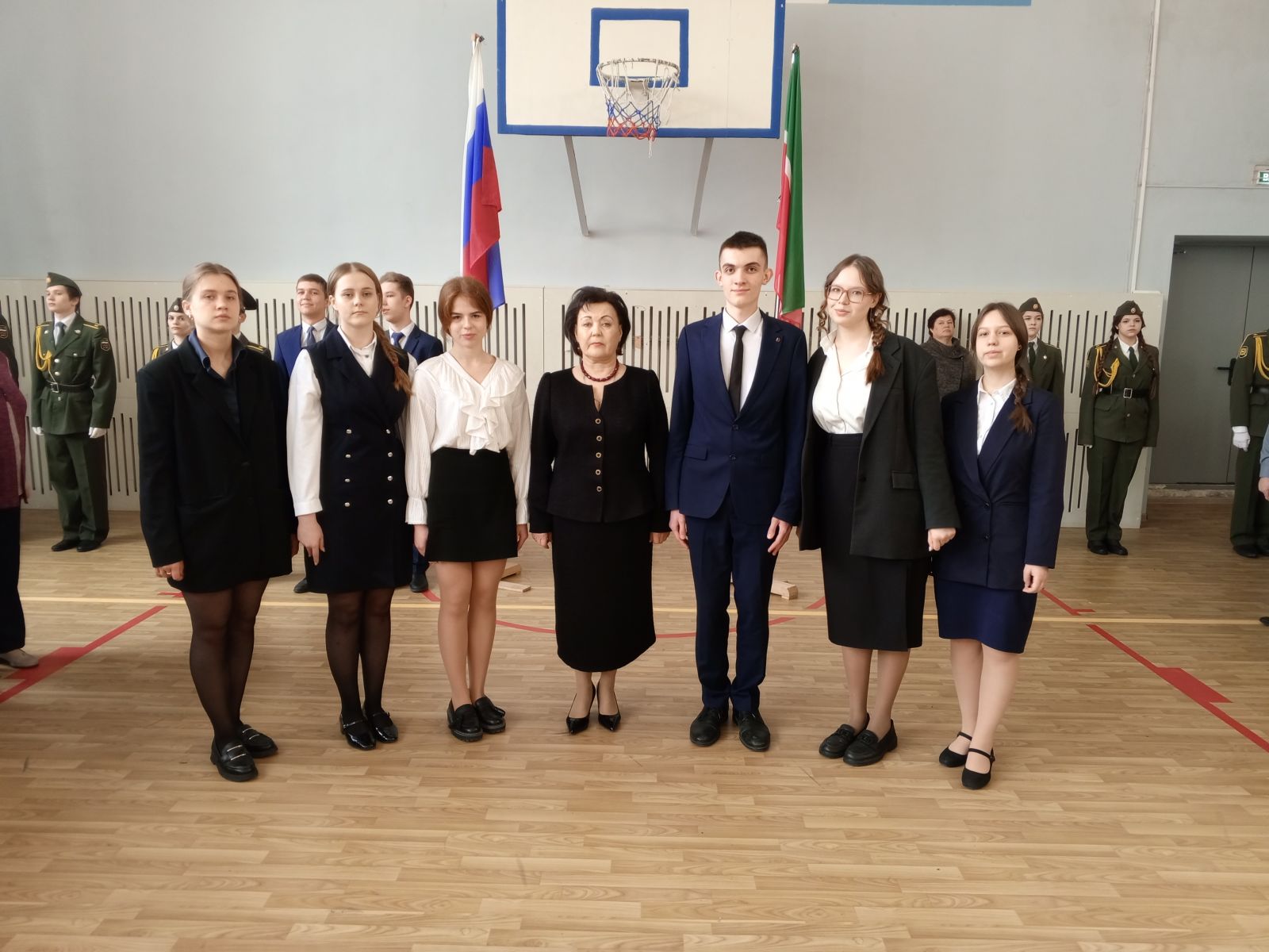 Опубликовано: 14.04.2026На церемонии поднятия флагов были награждены ученики 9 класса Ахметшин А. и Тагиров А., выступившие с докладом на Международных общественно-научных чтениях, посвященных памяти Юрия Алексеевича Гагарина. Также были отмечены ученики 11 класса - активные участники Музея космонавтики гимназии: Царёв В., Петрова А., Киселёва Д., Балакина К., Максимова К., Мухина Е.