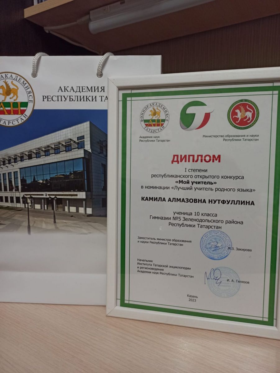 Поздравляем ученицу 10 класса Нутфуллину Камилу с I местом в республиканском открытом конкурсе "Мой учитель" в номинации "Лучший учитель родного языка"!