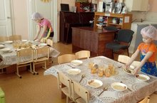 Мы посуду на столы