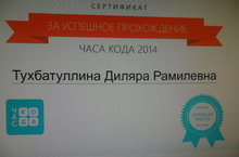 4 -12 нче декабрь көннәрендә мәктәп укучылары Бөтенроссия күләмендә уздырылучы "Час кода" акциясендә катнаштылар.Әлеге чара информатика фәне кысаларында,укучыларның информацион технологияләргә һәм информатиканы өйрәнүгә кызыксынучанлык арттыру максаты белән уздырылды.Укучылар сертификатлар алдылар.