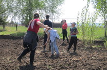 Бакчада эшләр гөрли. Бүген суган, кишер һәм чөгендер утырттык.