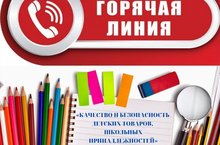 С 14 августа по 25 августа 2023 года Учреждениями Роспотребнадзора проводится "горячая линия" по вопросам качества и безопасности детских товаров и школьных принадлежностей. Содержание тематики горячей линии: что необходимо знать при покупке детских товаров, школьных принадлежностей, рекомендации по подготовке ребенка к школе, о подготовке школ к новому учебному году, требования к организации горячего школьного питания и т.п. Данные для обращений граждан по вопросам качества и безопасности детских товаров, школьных принадлежностей, профилактики инфекционных заболеваний, санитарного законодательства и защиты прав потребителей: - телефон консультационного пункта Зеленодольского Филиала ФБУЗ «Центр гигиены и эпидемиологии в Республике Татарстан»- (84371) 5 72 63, - телефон Единого консультационного центра Роспотребнадзора - 8 800 555 49 43 круглосуточно; - обращаться в рабочие дни с 8.00 до 12.00 и с 13.00 до 16.40.