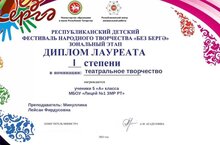 18 май конне Казан шәһәрендә “Без бергә” Республика күләмендә балалар иҗат фестивале булып узды.Нәтиҗәләргә йомгак ясалып,безнең Лицеебызның “Сәләт “театр түгәрәге 1 нче дәрәҗә лауреат исеменә лаек булды. Җитәкчесе –Минуллина Л.Ф Котлыйбыз һәм киләчәктә дә яңа уңышлар телибез!