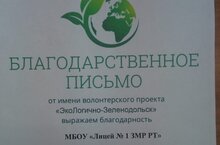 За активное участие в экологической акции # ЭКОВЕСНА2022 хочется выразить благодарность лицеистам, учителям и родителям. За сотрудничество с волонтерами «ЭкоЛогично-Зеленодольск» мы получили благодарственное письмо.
