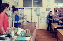 15 января 2017 года ребята 2А класса побывали в кафе на мастер- классе и приняли активное участие в изготовлении пиццы. Для начала будущим пиццийоло выдали фартуки. В зале был накрыт большой стол с ингредиентами будущего блюда. Шеф-повар кафе ознакомил с технологией приготовления. Работа закипела: каждый старательно раскатывал тесто, смазывал его соусом, раскладывал начинку, писал на пицце своё имя. И вот пицца готова! Пора снимать пробу! Дети были в восторге! Вот так интересно и полезно мы провели выходной день.