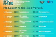 Консультации начнутся 10 ноября и продлятся до 17 ноября. Ежедневно будут проходить прямые эфиры по двум предметам ЕГЭ в 11:00 и в 13:00. Консультации будут транслироваться в онлайн-режиме на странице Рособрнадзора «ВКонтакте» и на Rutube.