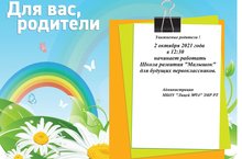02.10.2021 года в 12.30 начинает свою работу школа развития "Малышок" для будущих первоклассников.