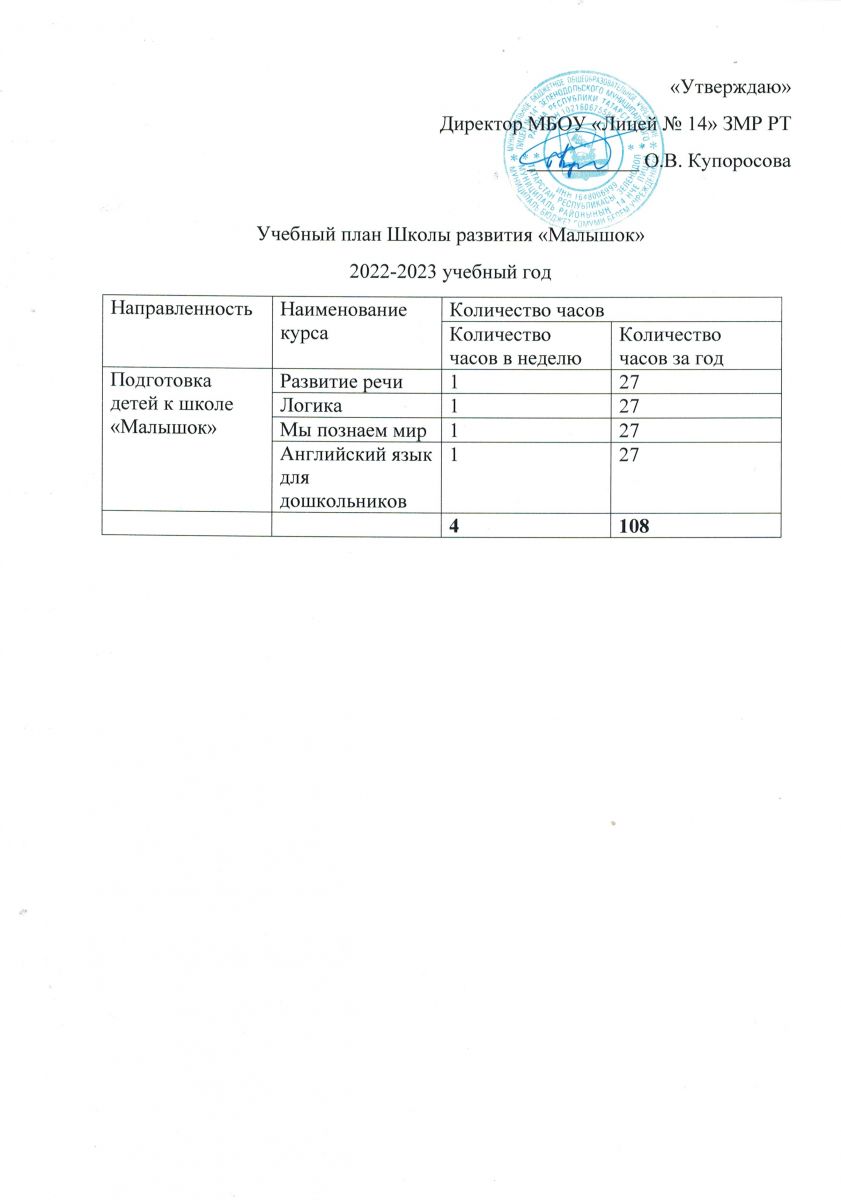 Учебный план школы развития " Малышок" на 2022-2023 уч.год