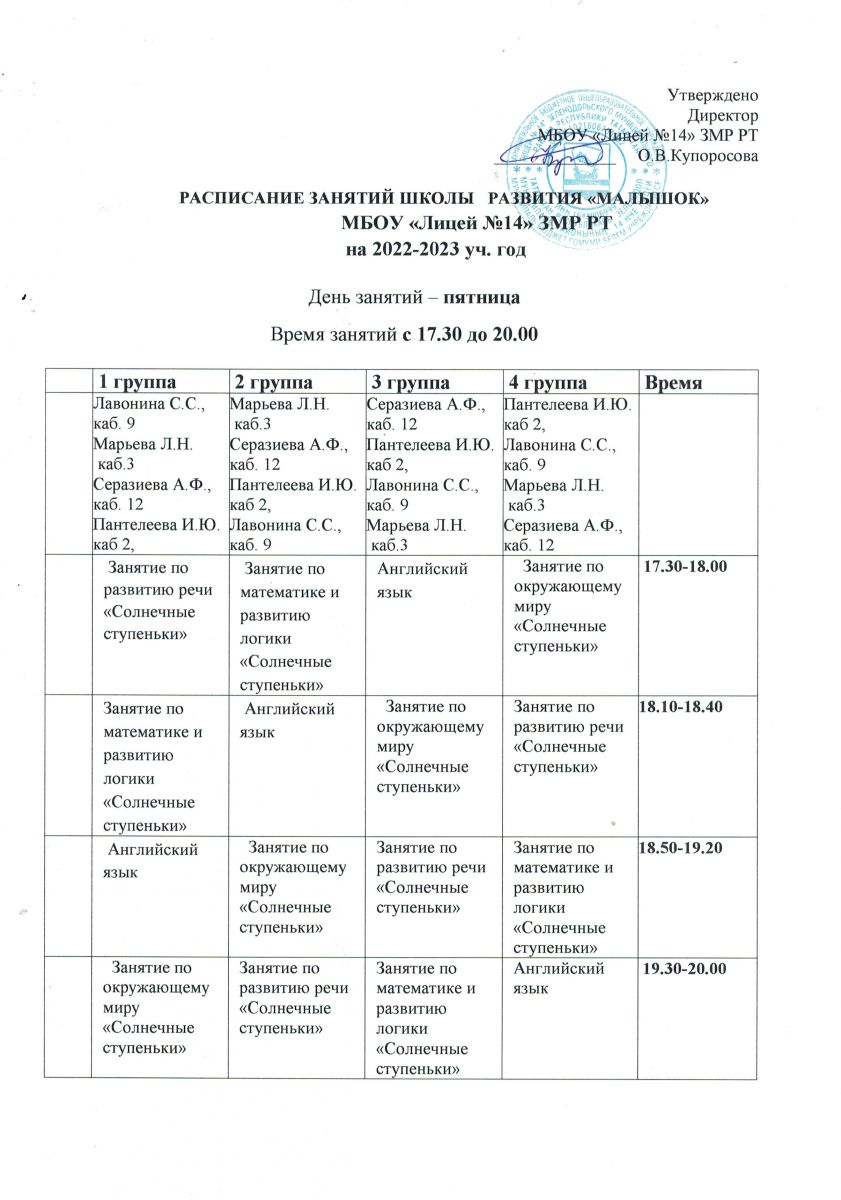 Расписание занятий " Малышок" на 2022-2023 уч. год