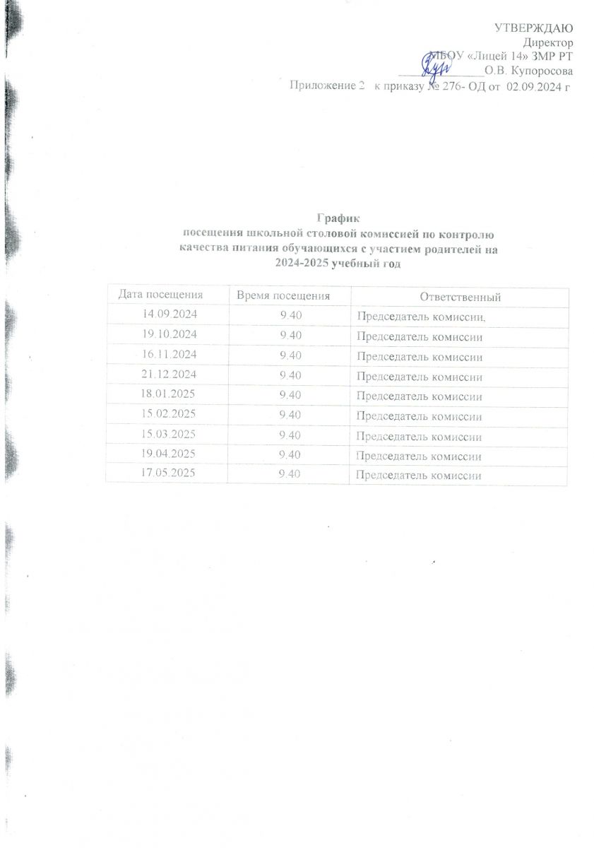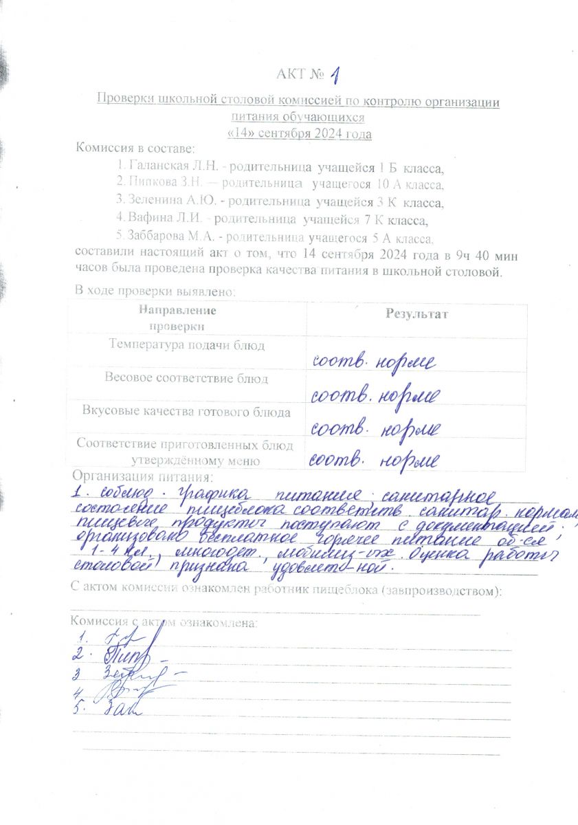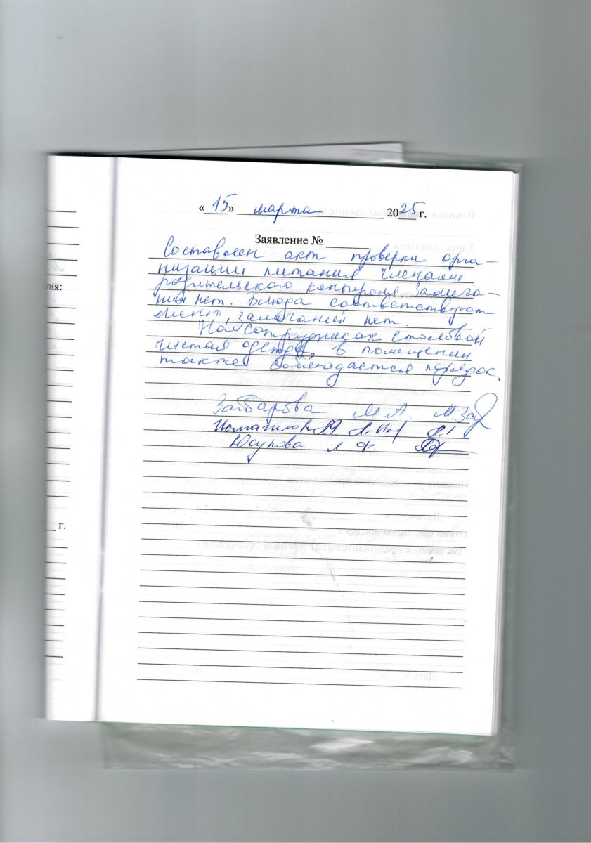 Фотоотчет организации питания 2024-2025Информация проверки организации питания в школьной столовой родительским контролем 2023-2024