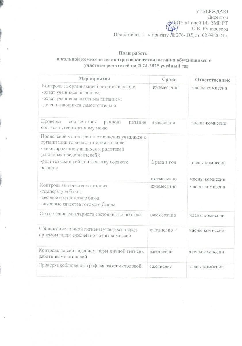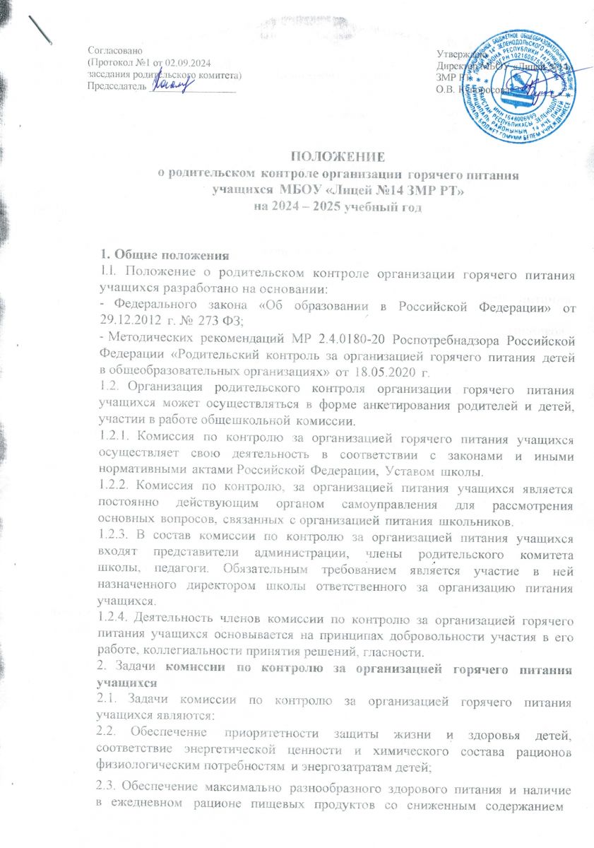 ПОЛОЖЕНИЕ О КОМИССИИ ПО КОНТРОЛЮ КАЧЕСТВА ПИТАНИЯ ОБУЧАЮЩИХСЯ С УЧАСТИЕМ РОДИТЕЛЕЙ.