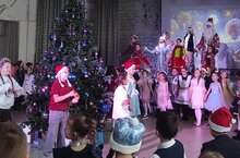 Музыка начинает играть, и актеры нашего лицея , наряженные в костюмы сказочных персонажей, высыпают на сцену. Змея -символ уходящего года. Лошадка - символ наступающего. А так же шурале и Баба-яга. Они водят хоровод вокруг елки, смеются, поют новогодние песни, создавая атмосферу радости и веселья.