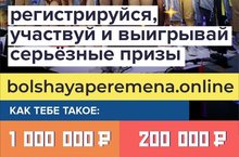 Большая перемена — сообщество для тех, кто готов меняться и менять мир. Здесь рулят не оценки, а способность нестандартно мыслить. Зарегистрируйтесь и примите участие в интересных конкурсах "Большой перемены"