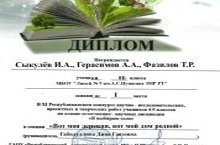 XI Республика фәнни-тикшеренү, проект-иҗади проект конкурсында Сыкулев Иван, Герасимов Артем, Фазилов Тимерхан ( 8 нче сыйныф), Фадеева Анастасия (9 нчы сыйныф), Галимов Ришат ( 9 нчы сыйныф)- җиңүче, Федотова Карина ( 3 нче сыйныф) -3 нче урын дипломнары белән бүләкләнделәр.