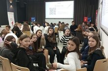 26 октября, в рамках профориентационной акции "День IT-знаний", в нашем лицее для учащихся 8-х классов выпускник лицея, менеджер продукта в компании ВК Кашаев Юрий проводил урок, посвященный современным профессиям и цифровым технологиям. Во время занятия ребята могли отсканировать код и получить подарок на платформе VK.