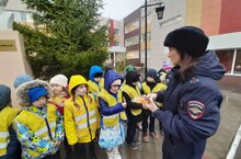 Акция "Внимание- дети" совместно с сотрудниками ГИБДД Леонтьевой Ю.И. и Шакировой З.В. - продолжение цикла мероприятий по профилактике дорожно-транспортных проишествий. Ученики 1Л класса отработали правила перехода дороги и получили в подарок световозвращающий элемент в виде брелка на ранец.