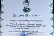 Поздравляем призера очного этапа научно-практической конференции "XX межрегиональные юношеские научно-исследовательские чтения имени Каюма Насыйри" ученицу 9Л класса Шарипову Ралину - дипломанта III степени и учителя родного (татарского) языка Абрарову Фанзилю Якуповну !!!
