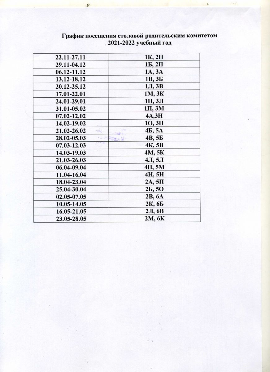 ГРАФИК ПОСЕЩЕНИЯ СТОЛОВОЙ