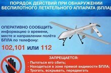 Не использовать телефон при приближении БПЛА.ВНИМАНИЕ! Сообщите о БПЛА по номеру "112", назовите время и место, примерный курс полета, его визуальные особенности, а также свои данные.